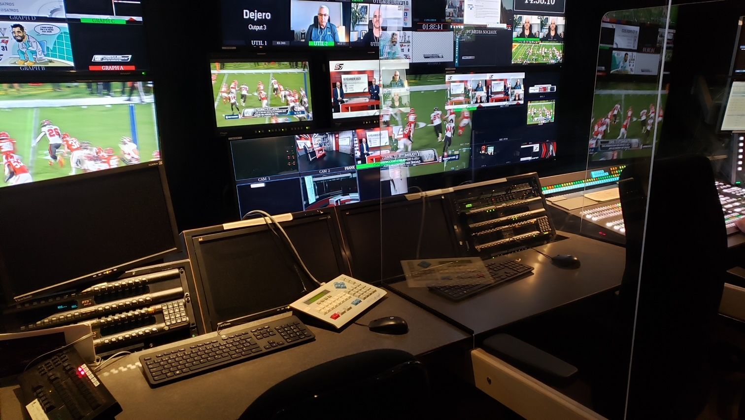 On a typical day, during a newscast or TV sports production, there are between seven and nine people working simultaneously in the control room – which is not very spacious, filled with desks and all kinds of broadcast gear. The main attraction is the video wall, which is the key resource for everyone to execute their job correctly and on time.